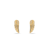 These magical and enchanting diamond earring studs are made of 14 karat gold with a handset diamond pavé. Inspired by the wings of a goddess, its glowing gold and diamonds will brighten your day.