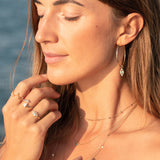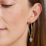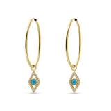 Two pairs of earrings in one! The 14 karat gold Evil Eye Turquoise Hoops feature handset diamonds and a turquoise gemstone. A glamorous statement hoop earring that feels light and comfortable on the ear. All day, all night.