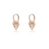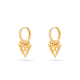 These delicate and playful gold huggie earrings are inspired by tribal forms and feature 6 different sized triangle charms dangling from the gold huggie. This lively design goes perfectly as a main earring and can be combined with other ear jewels.
