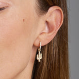These extravagant charms in 14 karat gold featuring a Cactus are handset with emerald gemstones. The two charms are different and add a playful and unique look to your eargame. Wear these charms on our Diamond Huggies or Essential Hoops. Also available in rose gold.