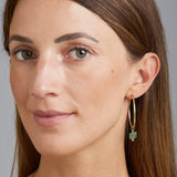 Our two piece 14 karat gold hoop earrings feature the Cactus Charms with handset emerald stones. The two charms are different and add a playful and unique look to your eargame. Take off the charm and wear the essential hoops on its own.